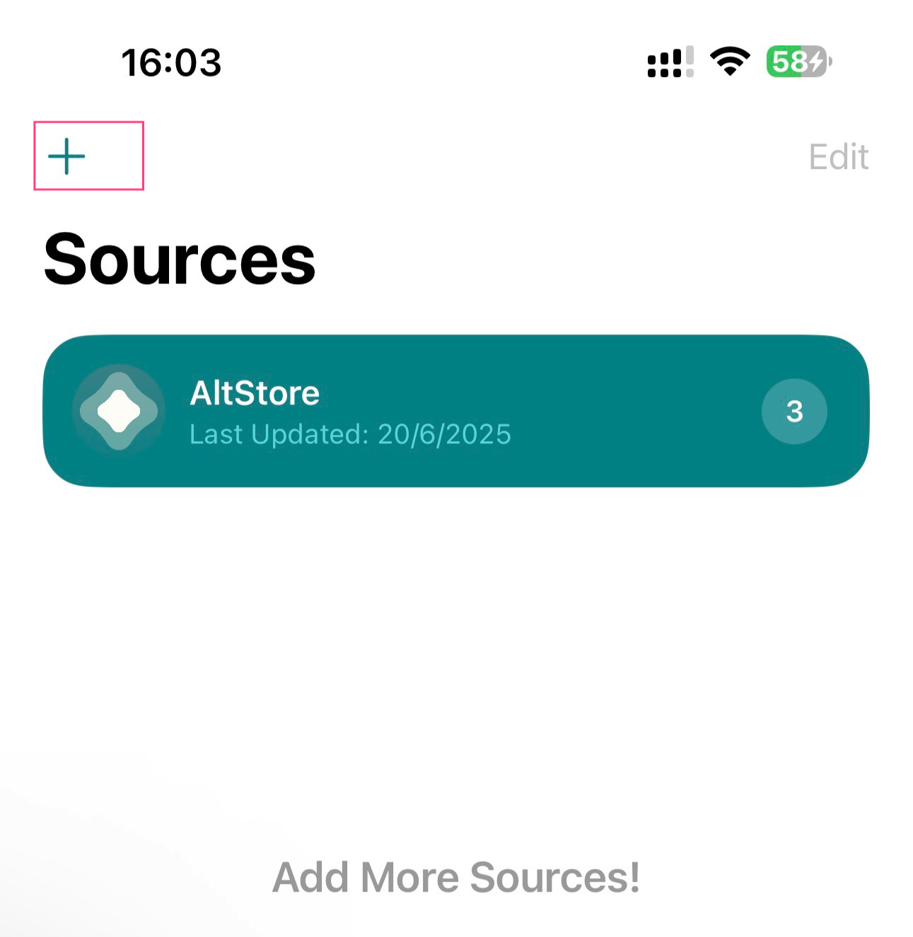 - Tap + → Add Source