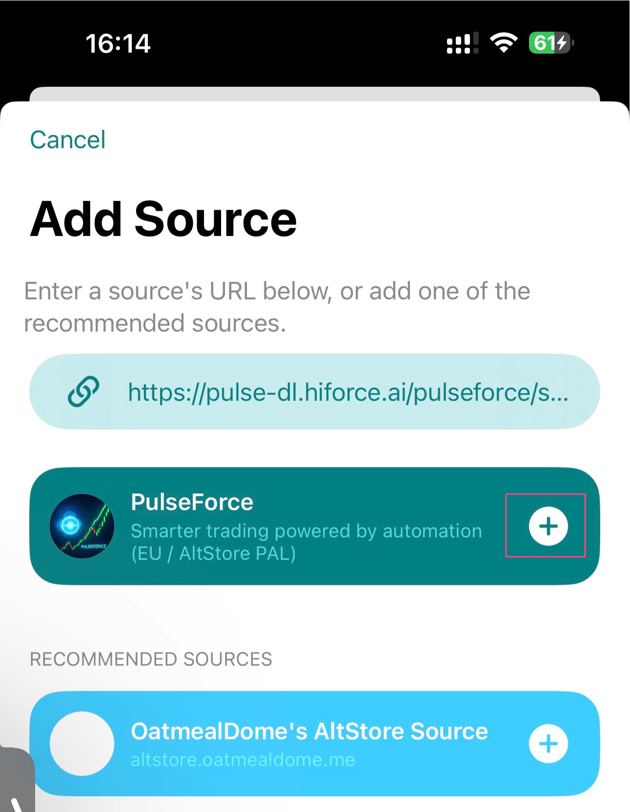 - Enter the source URL according to your AltStore version: